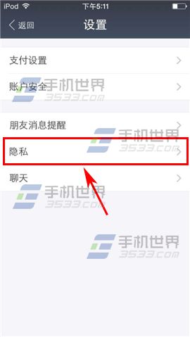 2)點擊【設置】一項,跳轉後再選擇【隱私】。(如下圖)
