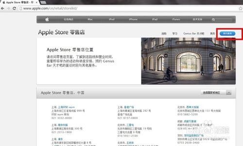 進Apple Store零售店網頁右上角點擊“預約服務”。 如果你嫌麻煩,下次自己輸入網址http://concierge.apple.com/reservation/cn/zh/進行預約!