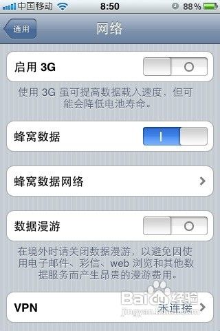 在網絡菜單裡啟用“蜂窩數據”