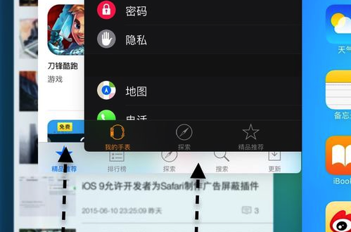 2、接下來就可以看到後台多任務管理了,與之前的 iOS7 和 iOS8 不同的是,應用程序的圖標從底部調整到了頂部。當然也可以通過左右滑動來查看在後台中不同的應用程序。