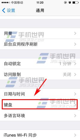 1)在iPhone6的設置界面點擊通用進入,找到並點擊【鍵盤】,進入後再點擊【鍵盤】。(如下圖)