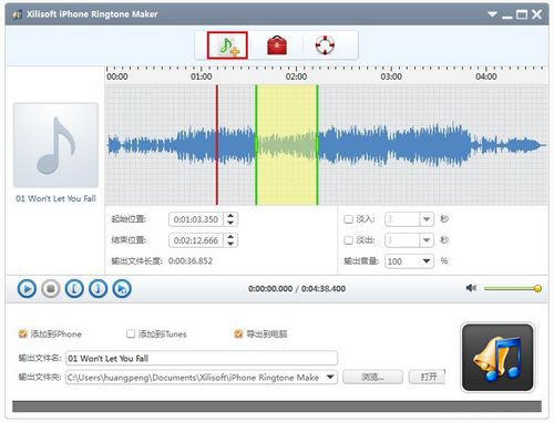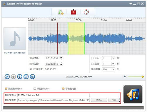 提示:鈴聲制作好後,您可以點擊“打開”按鈕直接查看鈴聲。