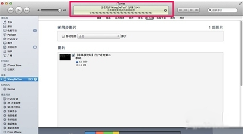 將設備連接到你的電腦,在iTunes左側列表裡點擊影片。