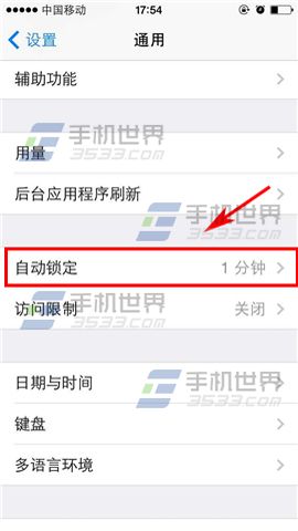 2)在通用設置界面點擊【自動鎖定】,根據自己的情況選擇鎖定的時間【分鐘數】即可。(如下圖)
