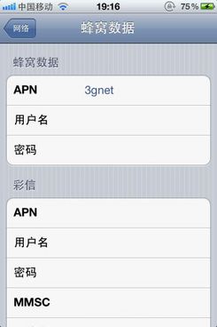 a、“蜂窩數據”設置組裡的“APN”填3gnet。