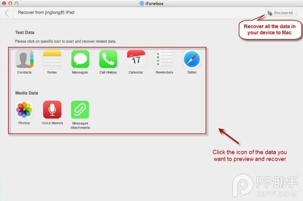 可恢復iOS 5/6/7/8系統的蘋果設備的 各類數據,並且有多個模式,
