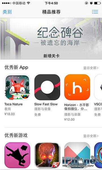 進入App store,顯示精品推薦界面