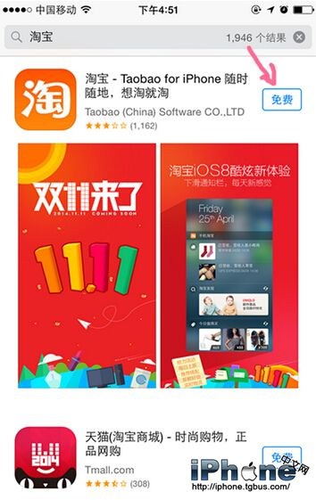 以手機淘寶為例,搜索淘寶,點擊“免費-安裝”