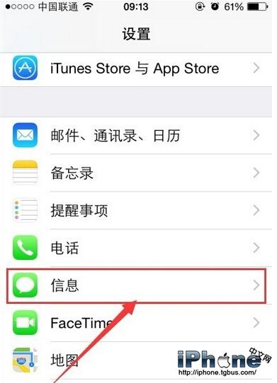 再回到手機的【設置】下拉並找到【信息】點擊進入
