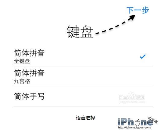 第四步:隨後會進入語言的選擇界面,當然是選擇中國,然後會讓我們選擇鍵盤,好了以後點擊“下一步”按鈕,如圖所示