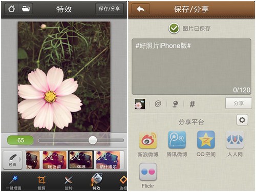Siri終於會講中文,內置Google地圖消失了,會變色的狀態欄,更加細膩的圖標…在體驗蘋果全新的iOS6系統時,別忘了給你的iPhone裝上時下最熱門的攝影類應用——好照片。日前,好照片推出2.1.0版,iOS6系統上使用也能暢通無阻,並且添加了時尚藝術的文字水印功能。這些改變不僅是軟件的升級,更是表達了好照片樂意創新、跟隨年輕新銳的積極態度,從極致流暢的操作體驗、專業的合成效果、到大氣簡潔的UI設計,多種優質元素的融合都讓好照片成為iPhone攝影的必備品。