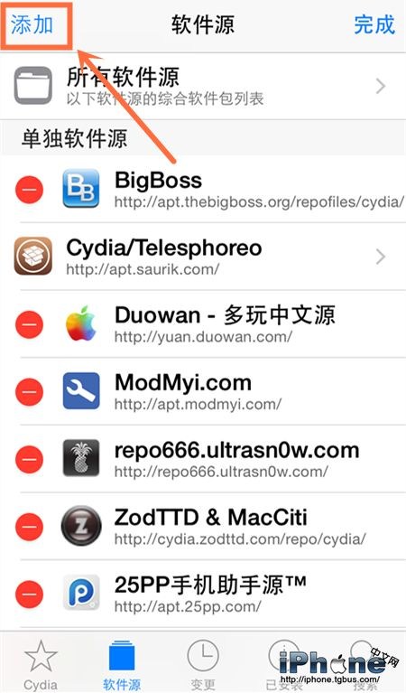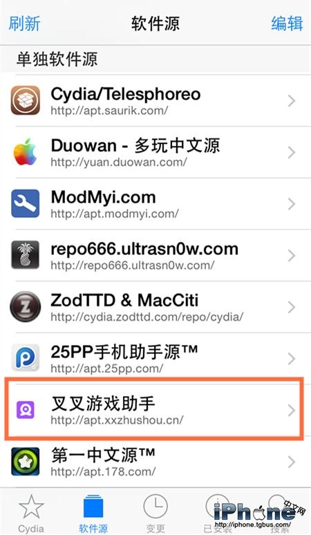 1.在已越獄的ios設備上,點擊Cydia圖標,進入軟件源界面;