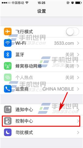 在iphone6plus手機的設置界面選擇【控制中心】,關閉【應用程序內訪問】右邊開關即可。(如下圖)