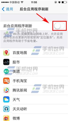 2)在通用界面選擇【後台應用程序刷新】,進入後關閉【後台應用程序刷新】右邊的按鈕即可。(如下圖)
