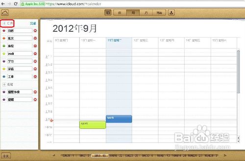 接下來下圖左上角標識的“+”號,增加新的日歷分類,如下圖所示