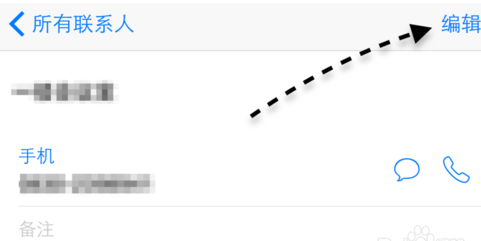3、隨後我們打開 iPhone 上的通訊錄,找到想要為他設置小頭像的聯系人,在詳細信息界面裡請點擊右上角的“編輯”按鍵,如圖所示