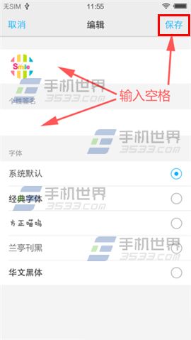 2)在【昵稱】和【個性簽名這兩欄輸入一個空格】,(注:只能輸入空格,不能輸入其他字符),然後點擊【保存】,返回鎖屏界面可以看到昵稱和個性簽名消失了。(如下圖)