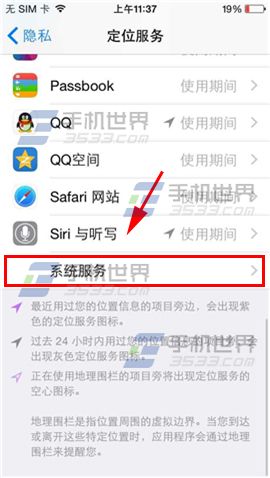 2)點擊【定位服務】,進入後找到並點擊【系統服務】。(如下圖)