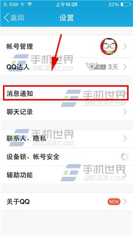 3)點擊【設置】進入,在設置界面點擊【通知】。(如下圖)