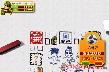 開始賺錢啦,哈哈哈,看見小魚的蔣小紅了把,多麼富有革命的氣息,咦,這場景不是跟大富翁一樣嘛,那應該很好上手了,新游戲開始時會隨機贈送3張卡片,我不告訴你我得的是什麼卡片,哈哈哈