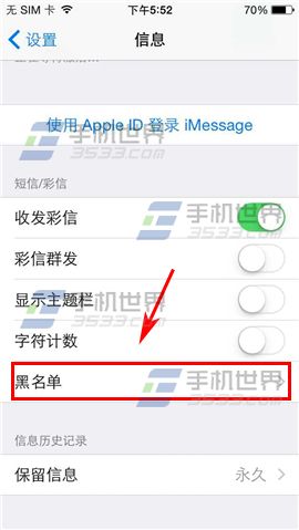iPhone6信息黑名單如何設置