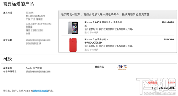 (5)在下單完成之後,如果選擇的是信用卡在線支付、支付寶等非貨到付款方式,那麼您還需要進入最後付款環節,值友們也可選擇貨到付款方式購買來節約下單時間。在最終付款完成之後您就將成功預定您的新iPhone,同時注冊Apple ID的郵箱也將會收到來自蘋果中國線上商店的確認郵件。