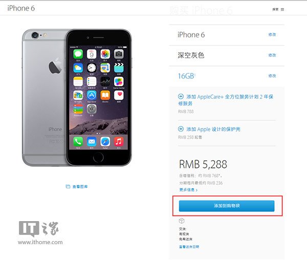 選擇你想要的版本,這裡挑選了iPhone6 16GB深空灰版本。話說到了後期,蘋果官方的售價一點都不給力。