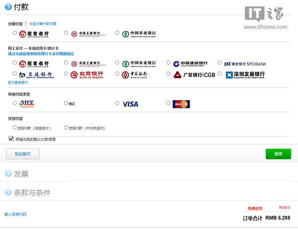 最後,你要提前想好付款方式,目前中國蘋果官網提供了借記卡、信用卡、支付寶、貨到付款、電話付款、電匯等方式,此外,你還可以選擇分期付款。
