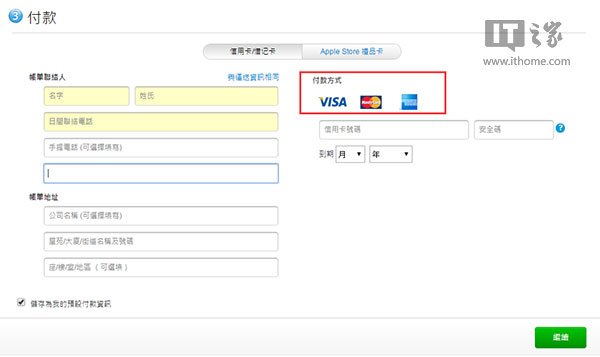 2、目前香港官網支持用Visa、MarsterCard和美國運通的信用卡以及Apple禮品卡來支付,所以你需要先准備好一張信用卡。
