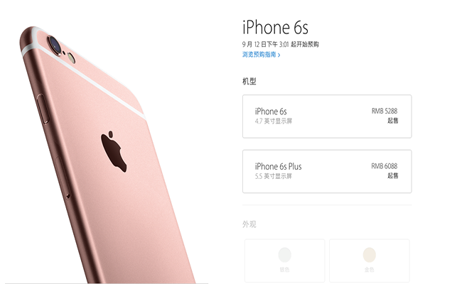 最後,價格上,新款的 iphone6s 國行版本 5288 RMB 起售,每個容量版本之間加 800 RMB 以及 iphone6s plus 國行版本 6088 起售,每個容量版本之間加 800 RMB。