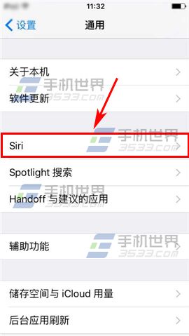 2)在通用界面點擊【Siri】,進入後打開【Siri】右邊開關,你也可以開啟【允許“嘿Siri”】就可以不按主屏幕按鈕,只要說“嘿Siri”即可與Siri對話。(如下圖)