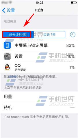 1)在設置界面選擇【電池】,點擊【過去24小時】可以查看24小時前的電池用量。(如下圖)
