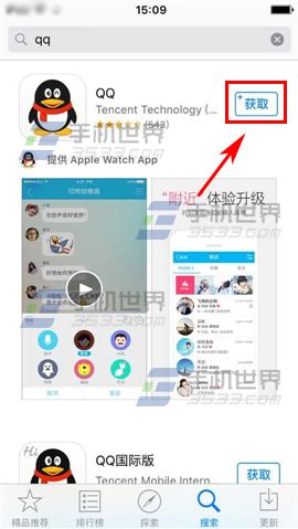 2)比如搜索QQ,點擊【獲取】再安裝,首次下載需要輸入你Apple ID,接著點擊【好】。(注:Apple ID即是你激活手機綁定的郵箱地址)(如下圖)
