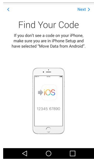 3.轉到安卓設備,前往 Google Play Store 下載“Move to iOS”應用。打開應用,點擊繼續並同意相關條款。你會看到下圖出現,點擊“Next”,並輸入剛剛在 iOS 設備上顯示的 10 位數字代碼。