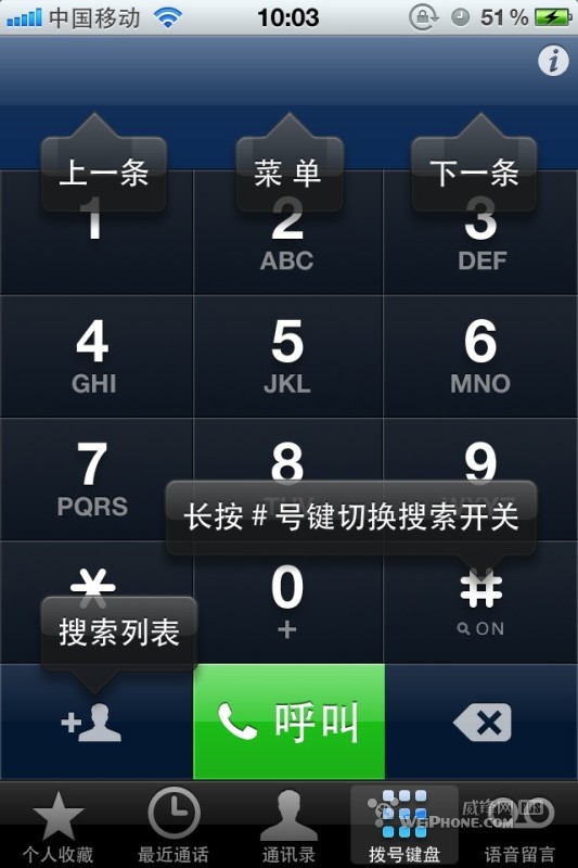 T9 快捷撥號,支持通過英文、簡拼、拼音和電話號碼查找聯系人,集成到電話程序中的撥號鍵盤;
