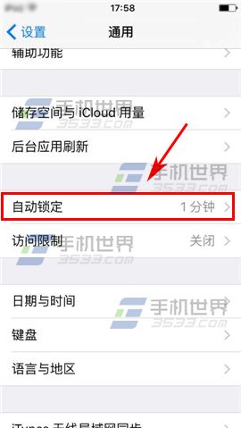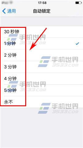 2)接著點選【自動鎖定】,進入後選擇好你【鎖屏時間】即可。(如下圖)
