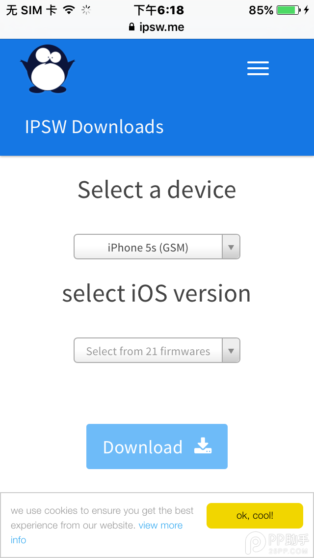 2、在地址欄中輸入【ipsw.me】;