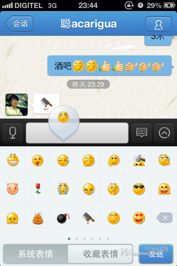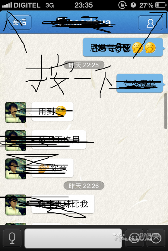 iphone功能其實是非常強大的,如果你發現可能會不覺得,iphone qq也有一些隱藏的功能,如當你想查看更早聊天記錄的時候..不用用手指望下劃.. .按一下左上角或者右上角直接可以跳到最頂頁....