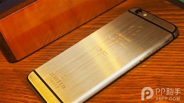 這款定制版iPhone6s名為“ZG GOLD iPhone6s”,由25Kt黃金打造,論外形當然和蘋果官方的iPhone6s沒什麼不同,區別在手機的後殼,手機的後蓋整體、側邊按鍵、Home鍵均采用9K黃金材質,SIM卡卡槽為18K實金打造。