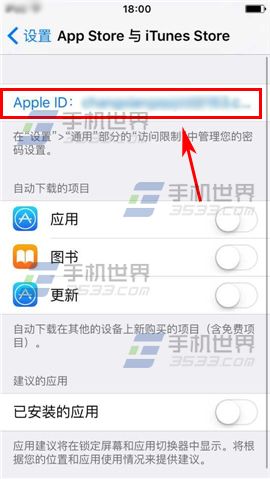 1)在設置界面點擊【App Store與iTunes Store】進入,再點選【Apple ID】一欄。(如下圖)
