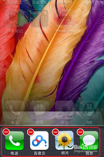在雙擊“Home主屏鍵”以後,按住下方出現的應用程序圖標不動,這時應用程序圖標的左上角會出現“絕色的減號”並“抖動”。我們可以點擊紅色減號用以強制退出應用程序,如下圖所示