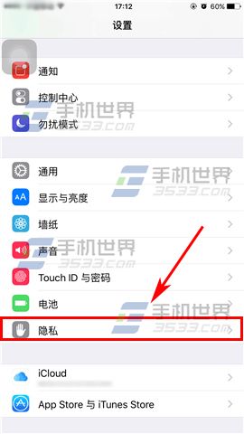 1)在待機界面點選【設置】進入,再點擊【隱私】。(如下圖)