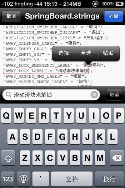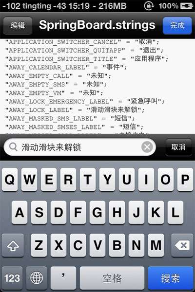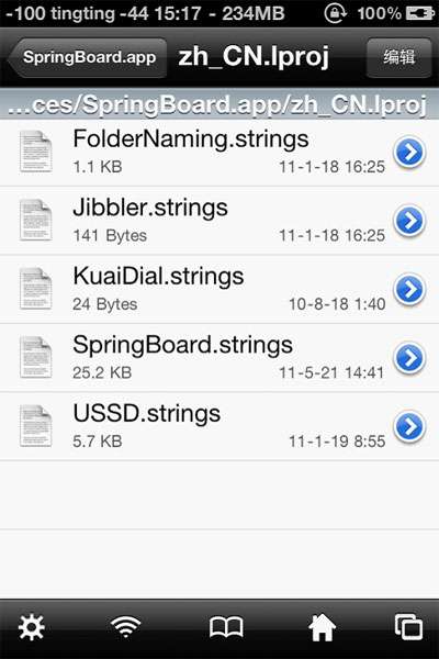 為啥我不用電腦來修改滑塊文字呢?因為SpringBoard文件用記事本打開是亂碼,所以只有借助iFile來修改。其實主題的天氣城市等等也是可以使用iFile來修改的,這個我就不在這裡介紹了。