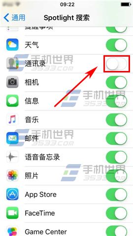 2)在通用界面點擊【Spotlight搜素】進入,關閉【通訊錄】右邊滑塊即可。(如下圖)