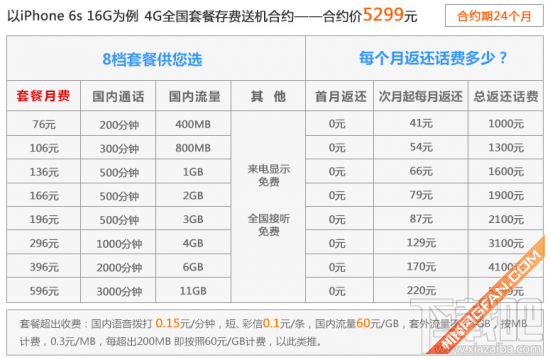 Ios教程網 >> IOS教程 >> 關於IOS教程 >> 蘋果iPhone 6s移動/聯通/電信合約機套餐對比