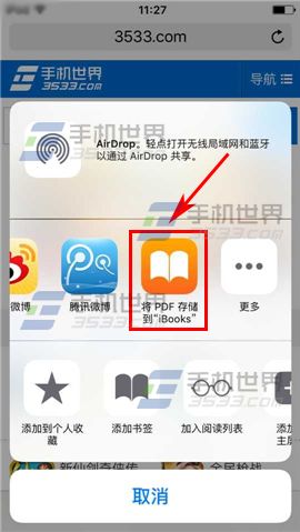 點擊進入手機自帶的【Safari浏覽器】,輸入網址後,點擊下方【分享】按鈕,再選擇【將PDF儲存到“iBooks”】,即可沒流量的時候在【iBooks】裡打開。(PS:趁還有WiFi,趕緊保存幾個網頁)(如下圖)