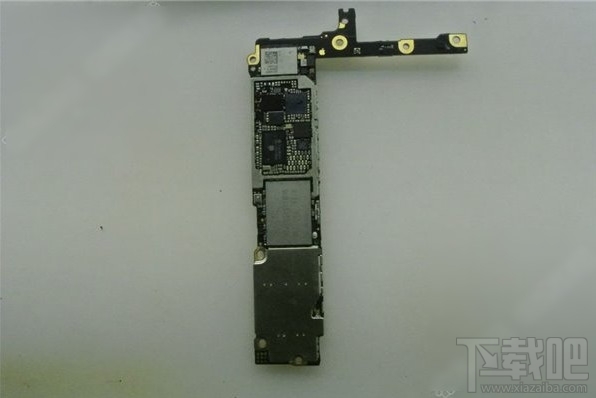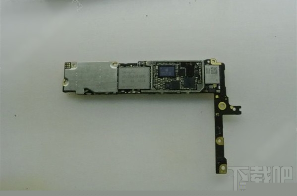 第四步:6plus主板相對比上一代5S的主板更薄了,像摔過擠壓更容易損壞,不過為了把機身做薄就不得不犧牲PCB板的厚度,主板背面中間那一塊白色芯片就是16G的閃存芯片了