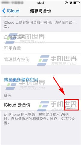 2)接著點擊【儲存與備份】,找到並關閉【iCloud雲備份】右邊滑塊即可。(如下圖)