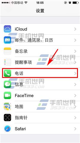 1)點擊【設置】進入,再選擇【電話】。(如下圖)