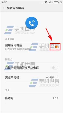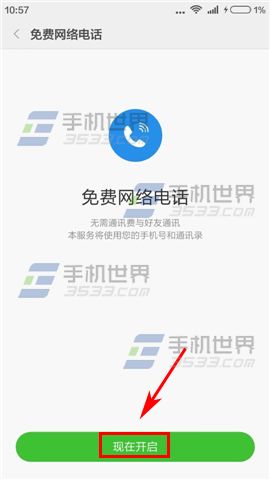 4)打開【啟用網絡電話】右邊滑塊,接著選擇一位聯系人點擊【免費網絡電話】即可撥打。(注:只要雙方都使用MIUI系統,並開啟網絡電話,即可通過WiFi或數據流量撥打電話)(如下圖)